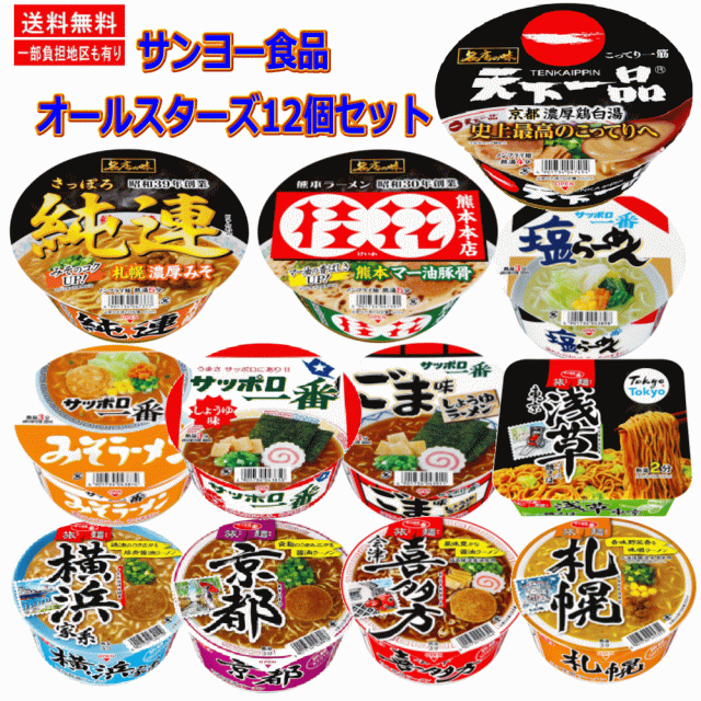新着 サンヨー食品 オールスターズ サッポロ一番 旅麺 名店シリーズ 天下一品 桂花 純連 カップ麺12種12個セット 関東圏送料無料