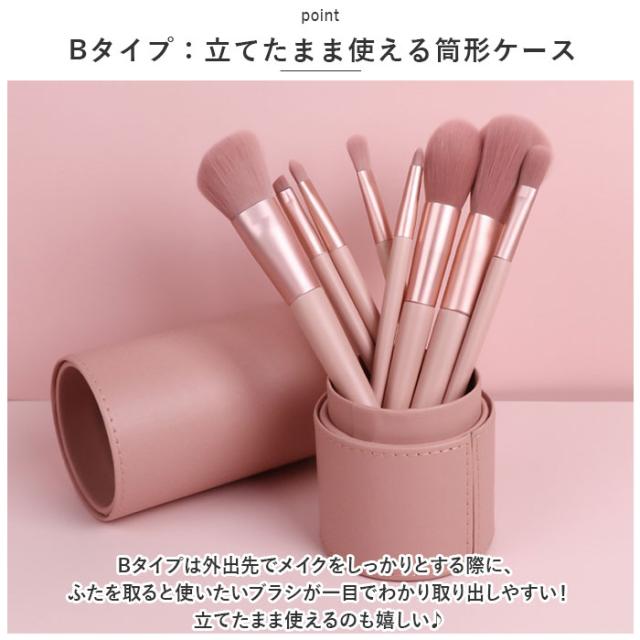 | 商品説明 | ・持ち運びに便利で可愛いメイクブラシ&収納ケースセットが登場! 【ベースメイクからフルメイクまで】 ・毎日のメイクに必要なブラシ8本がついていて、自宅だけでなく旅行先でもメイクを楽しめる! 【柔らかい毛先】 ・ブラシの毛先は柔らかな素材なのでチクチクしたイヤな感覚ナシ!デリケートなお肌も安心して使える。 【携帯に便利なポーチ入り】 ・Aタイプにはスナップボタンがついたポーチ付き、ばらばらになりがちなブラシをすっきり収納!持ち運びに便利◎ 【ブラシを立てたまま使える筒形ケース】 ・Bタイプは外出先でメイクをしっかりとする際に、ふたを取ると使いたいブラシが一目でわかり取り出しやすい!立てたまま使えるのも嬉しい♪ 【ちょっとした贈り物に】 ・お好みのものを選んで自分用だけでなく、お友達へのちょっとしたプレゼントなどにぴったり! 【ブラシセット内容】 ・フェイスブラシ、チークブラシ、シェーディングブラシ、ブレンディングブラシ、ハイライトブラシ、アイシャドウブラシ、アイブローブラシ、リップブラシ |