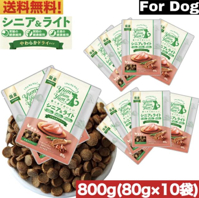 YumYumYum! ヤムヤムヤム シニア&ライト チキン やわらかドライタイプ 800g(80g×10) 正規品 国産素材 ドッグフード ドライフード 保存料 着色料 香料等 合成添加物 一切不使用 新鮮 国産 無添加 ヒューマングレード 小粒 犬 老犬用 シニア犬