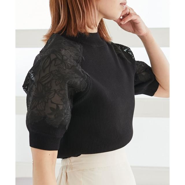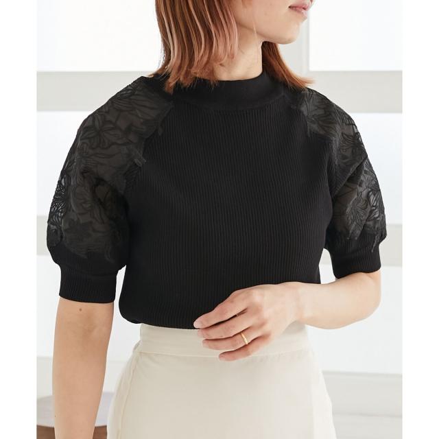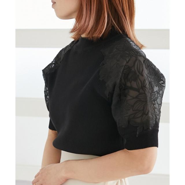 マジェスティックレゴン/エンブロイダリーフラワーニット