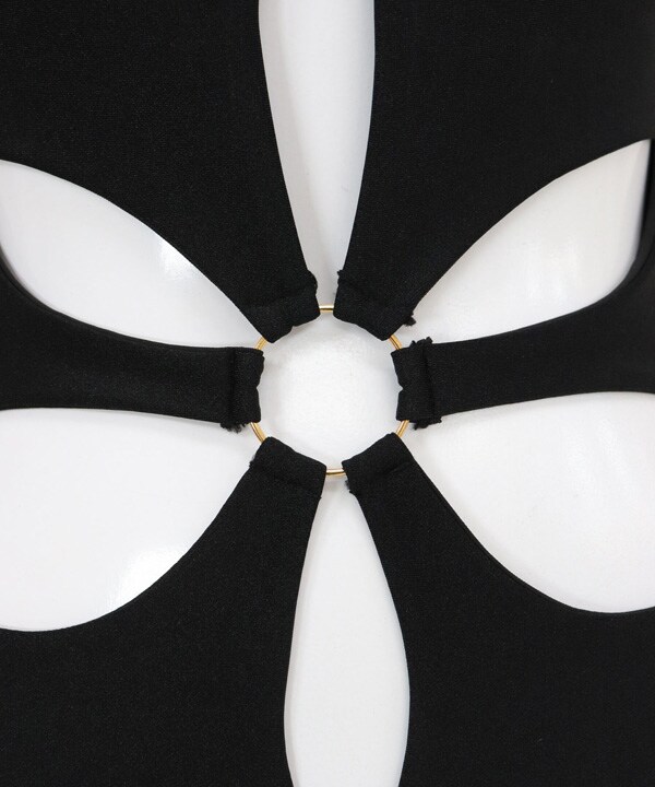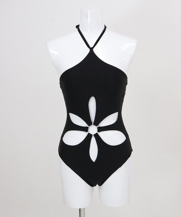 花の形に開いた肌見せデザインが目を惹くワンピース水着。