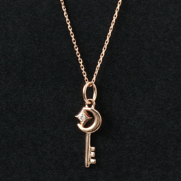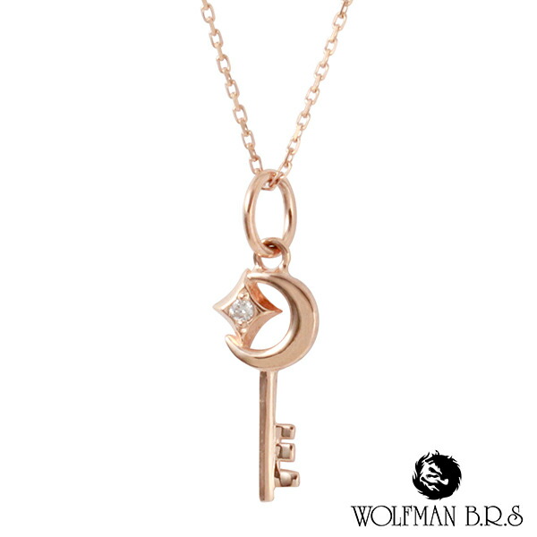 ウルフマンBRS 10K PG ムーン スター w キー チャーム ペンダント ゴールドネックレス ネックレス K10 10金 ピンクゴールド レディース ダイヤモンド