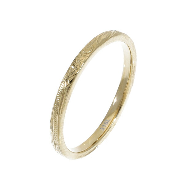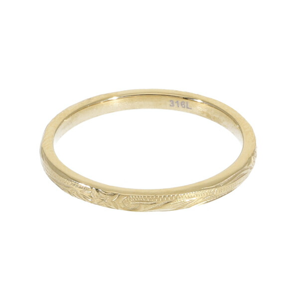 ハワイアン ストレート リング 17号 ゴールド ハワイアンジュエリー 繊細 彫刻 サージカルステンレス 金属アレルギーフリー 指輪 シンプル さりげない