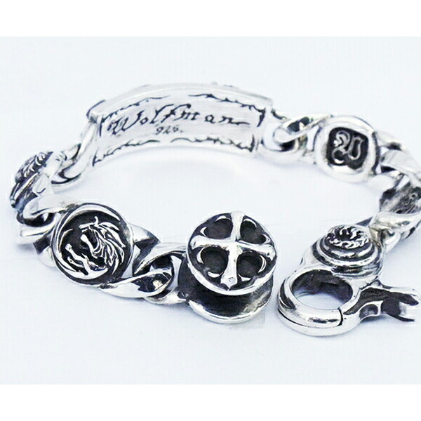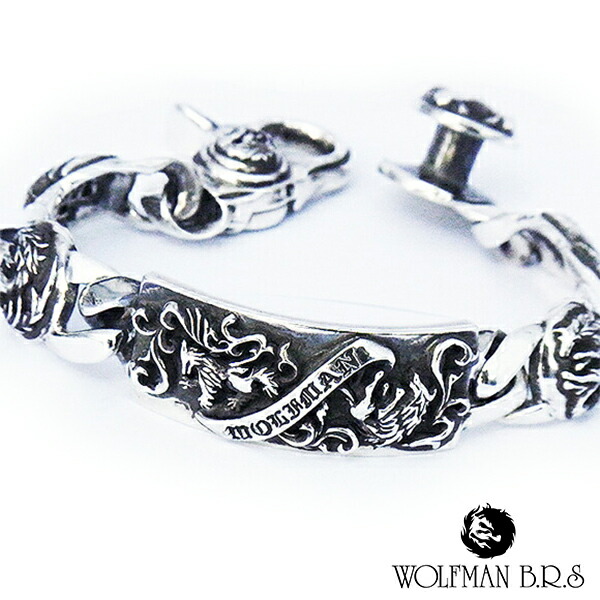 ウルフマンBRS スリーカインズ ウルフ ID シルバー ブレスレット オオカミ 狼 メンズ シルバーブレスレット チェーンブレスレット 腕輪 シルバー925