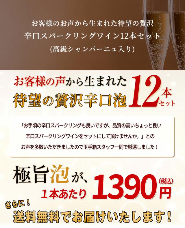 【送料無料】お客様のお声から生まれた待望の贅沢辛口スパークリングワイン12本セット (高級シャンパーニュ入り) ワインセット