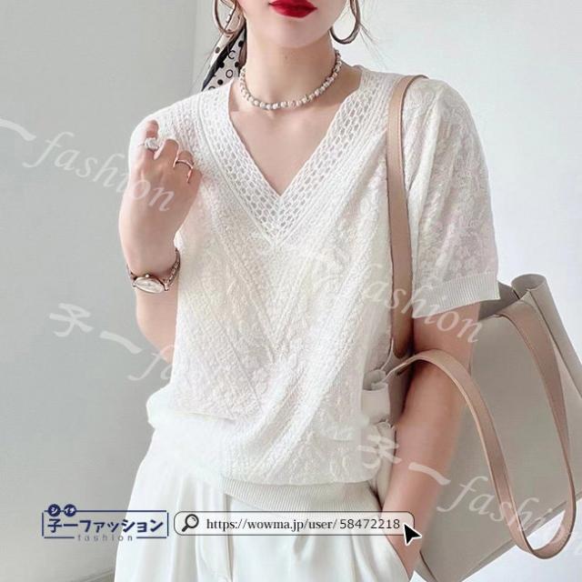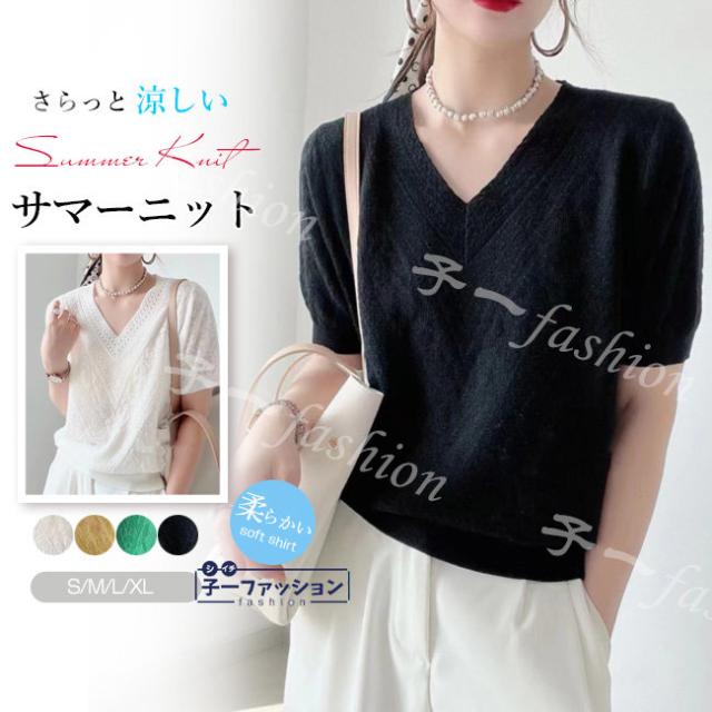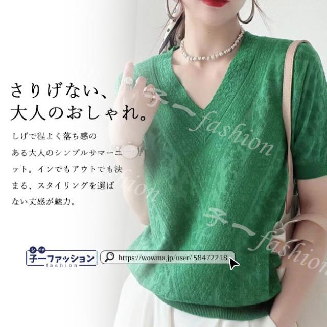 サマーニット 夏新作 新作 送料無料 レディース ゆったり 半袖 Vネック カットソー ニットトップス 通勤 着痩せ 夏服 カジュアル 無地 UVカット 紫外線対策 冷房対策 薄手 半袖Tシャツ おしゃれ 秋服 バレンタイン