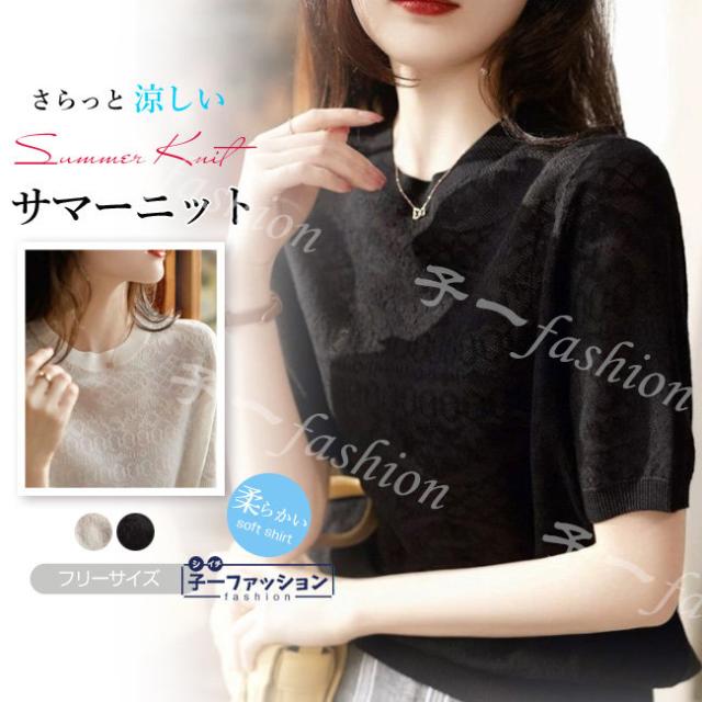 サマーニット 夏新作 新作 送料無料 レディース ゆったり 半袖 ラウンドネック カットソー ニットトップス 通勤 着痩せ 夏服 カジュアル 無地 UVカット 紫外線対策 冷房対策 薄手 半袖Tシャツ おしゃれ 秋服 バレンタイン