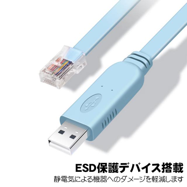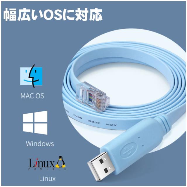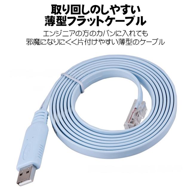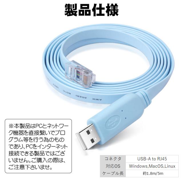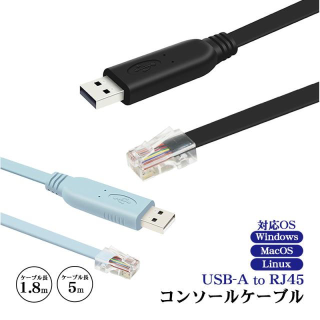 USB-A to RJ45 コンソールケーブル 1.5m 1.8m 5m フラットタイプ 薄型 高耐久 USBからLANへ変換 互換ケーブル スイッチ ルーター ファイアウォール サーバーなどのネットワーク機器に対応 Windows MacOS Linux対応