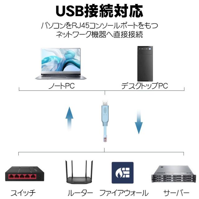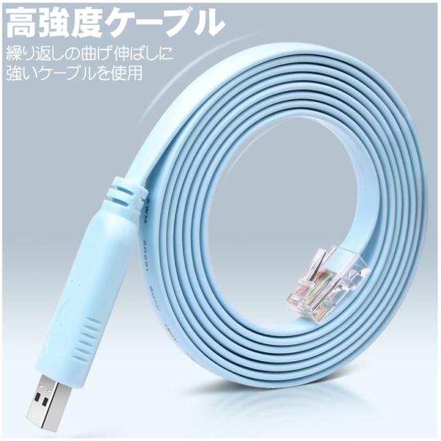 | USB-A to RJ45 コンソールケーブル 1.5m 1.8m 5mフラットタイプ 薄型 高耐久 USBからLANへ変換 互換ケーブル スイッチ ルーター ファイアウォール サーバーなどのネットワーク機器に対応 Windows MacOS Linux対応 |