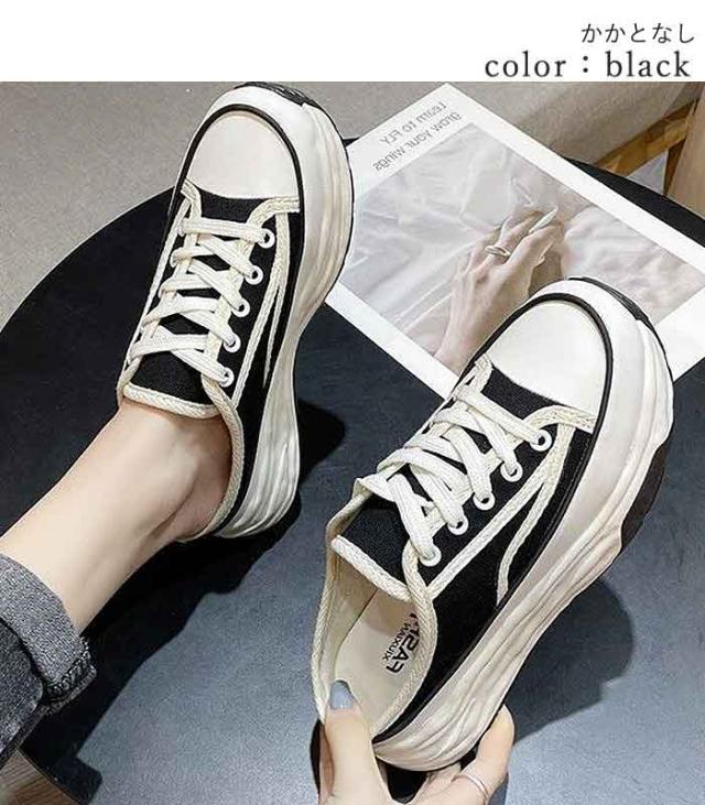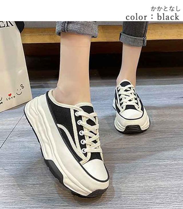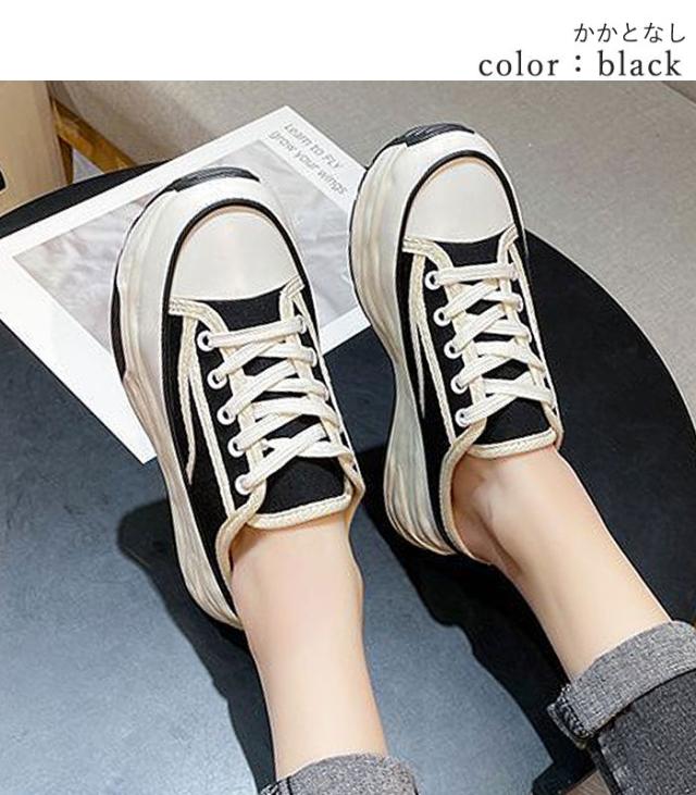 春新作 スニーカー レディース 厚底 ライン ローカット キャンバス レースアップ シューズ(送料無料)^bo-904^ ★