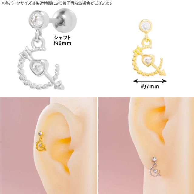 ハート アロー ジュエル チャーム ストレートバーベル 14G 16G 18G 20G サージカルステンレス ヘリックス 軟骨ピアス ボディピアス 矢 弓
