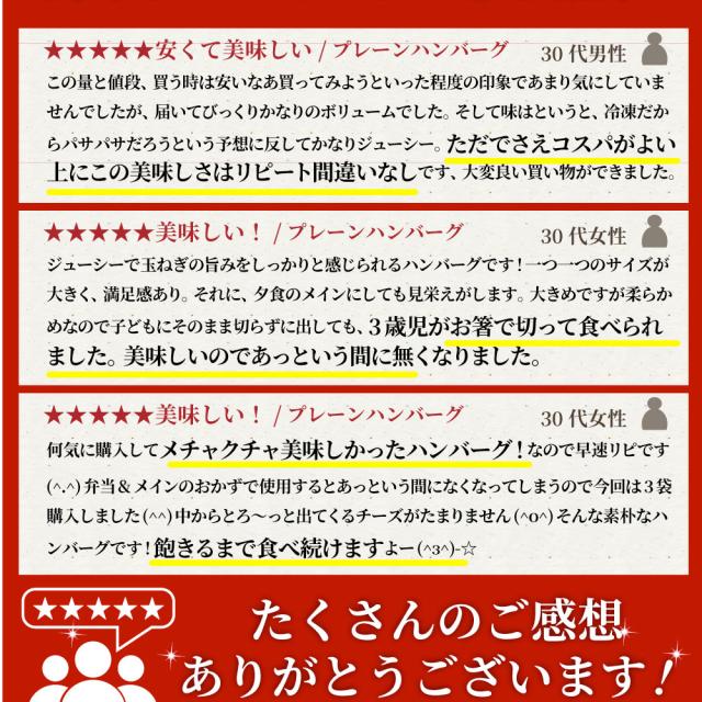 - うちにはたくさん食べる息子らがいるので、夏休みに自分たちでも調理できるようにとストック品として購入しました。 届いたその日にさっそくいただき、パンに挟んで手作りチーズハンバーグにしていました♪美味しか...