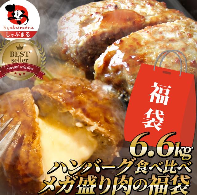 福袋 ハンバーグ 2種セット 6.6kg (プレーン100g×36個、チーズイン100g×30個) メガ盛り 冷凍 惣菜 レンジOK 弁当 行楽 オードブル パーティー ランキング1位 冷凍 *当日発送対象 お肉の しゃぶまる