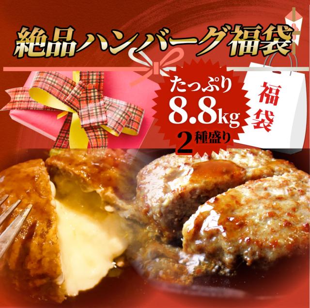 福袋 ハンバーグ 2種セット 8.8kg (プレーン100g×48個、チーズイン100g×40個) メガ盛り 冷凍 惣菜 レンジOK 弁当 行楽 オードブル パーティー ランキング1位 冷凍 *当日発送対象 お肉の しゃぶまる