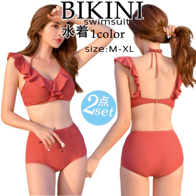 水着 体型カバー水着 レディース ビキニ オフショルダー スカート ショートパンツ 2点セット オトナ女子 20代 30代 40代 大人 ママ水着 かわいい セクシー フリル 二の腕 お尻 カバーアップ バスト 盛れる おしゃれ ギンガムチェック 無地