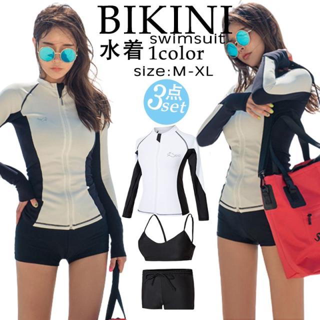 水着 レディース 体型カバー 3点セットビキニ
