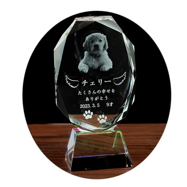 ペット位牌【世界に一つの特別:3Dクリスタル位牌(ウールー)無色透明】モダン オリジナル位牌 ガラス オーダーメイド 送料無料