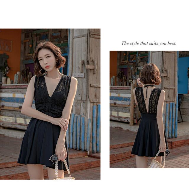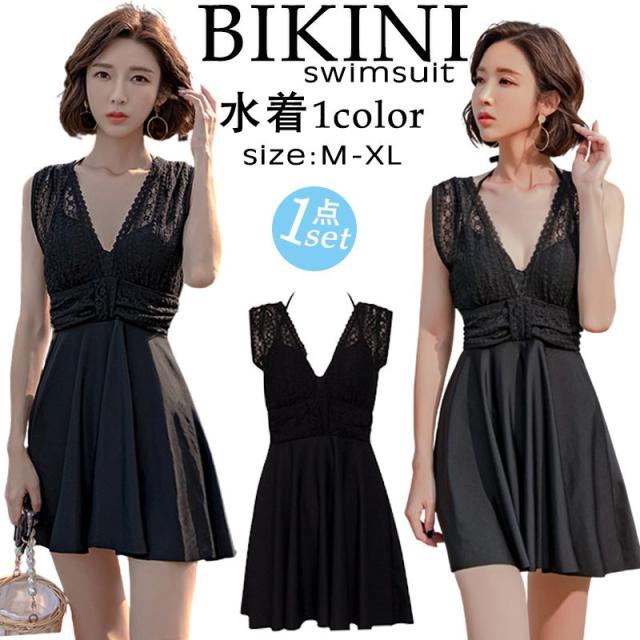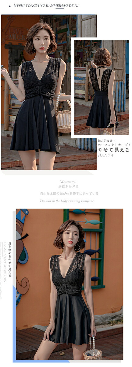 水着 レースワンピース レディース オールインワン ハイネック 体型カバー水着 ママ水着 20代 30代 40代 ぽっちゃり オトナ女子 大きいサイズ フリル フレアスカート 可愛い お洒落 チェック エレガント セクシー お腹 お尻 太もも カバーアップ 黒 露出控えめ ビキニ