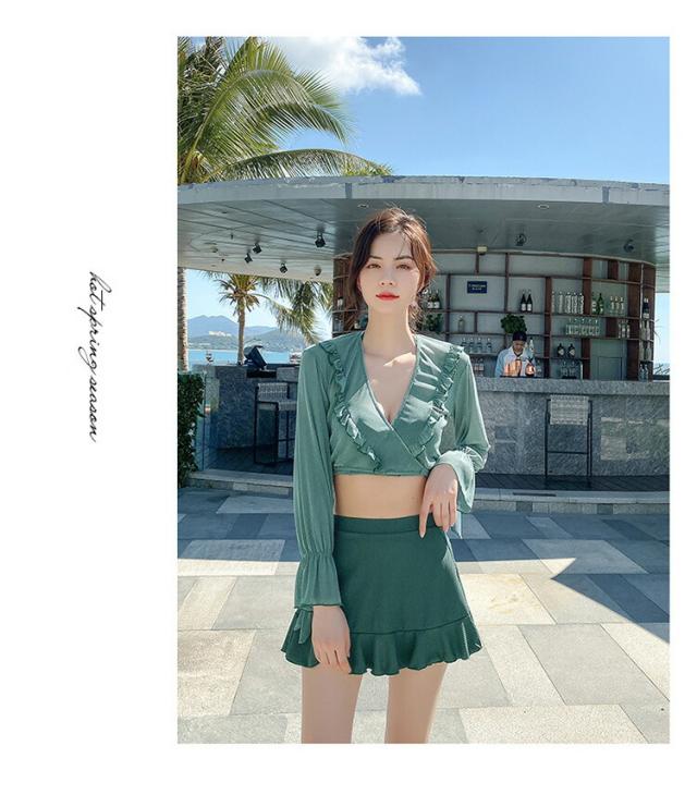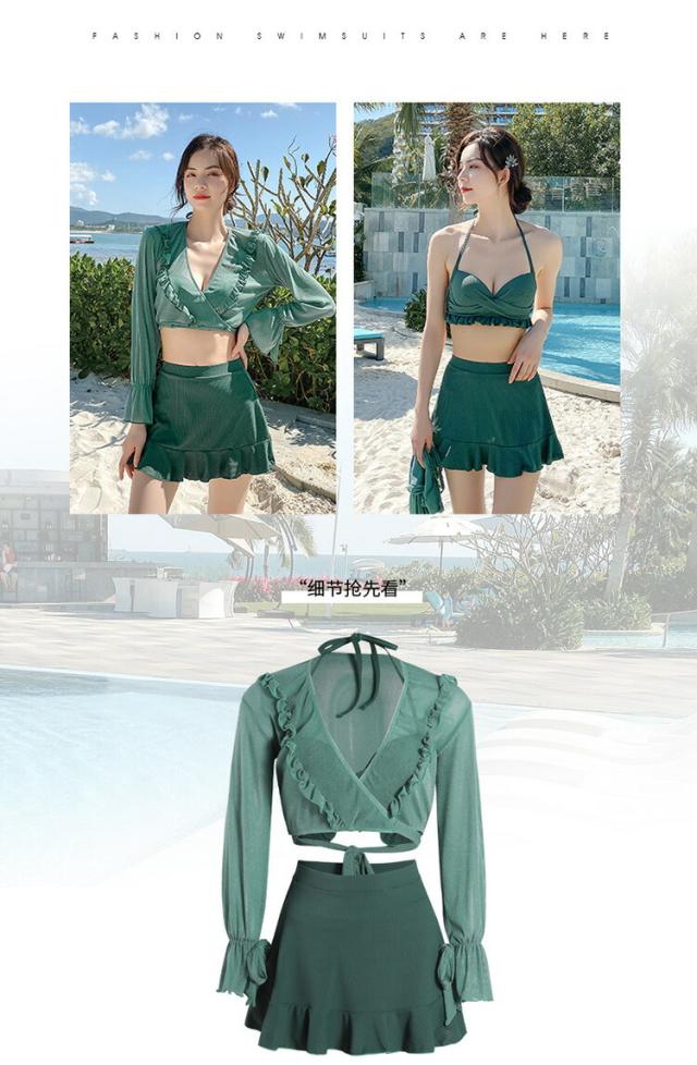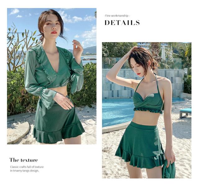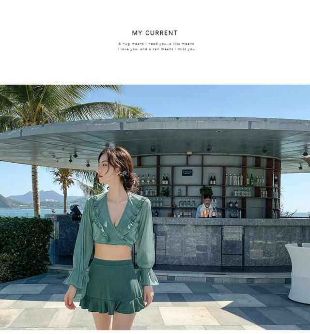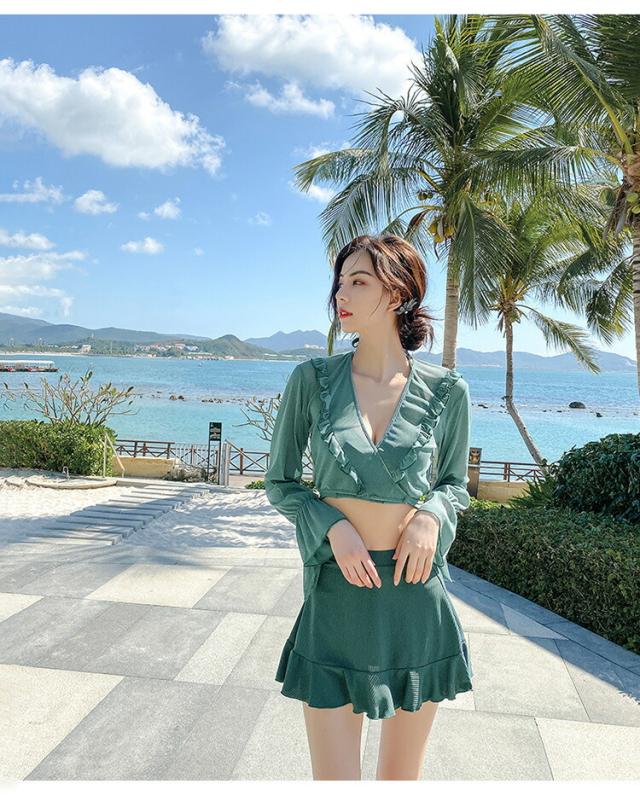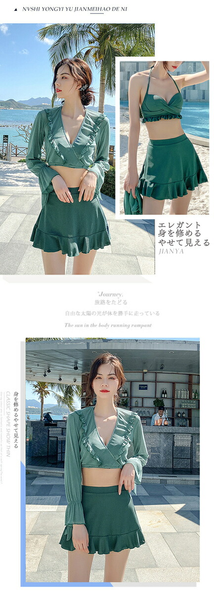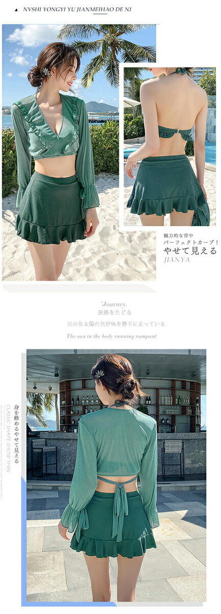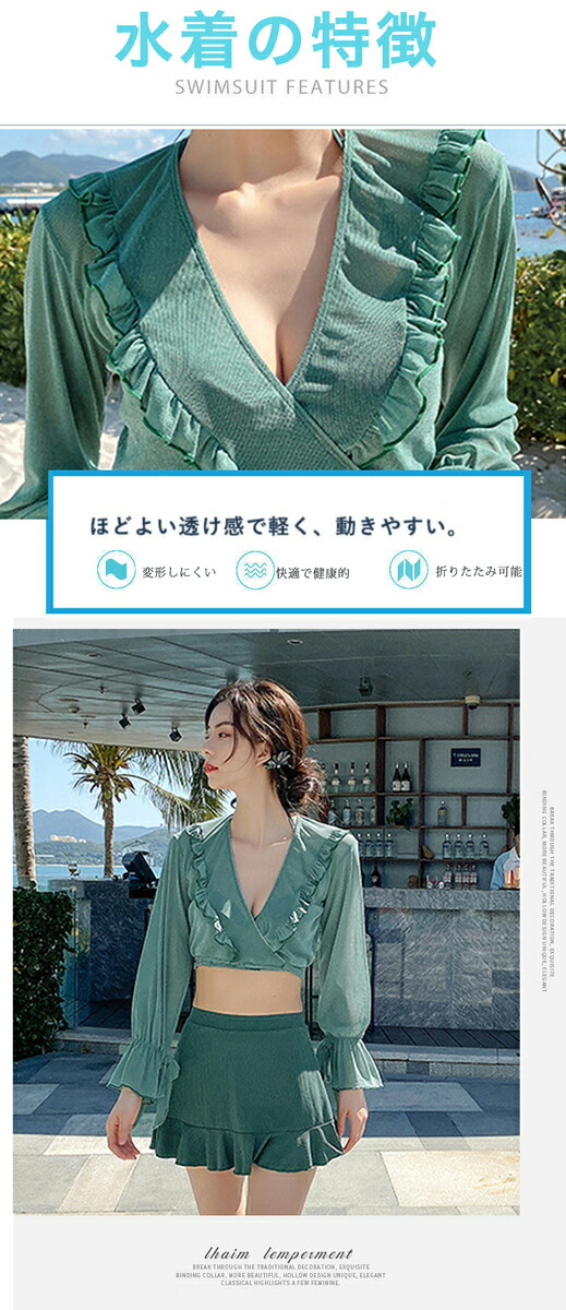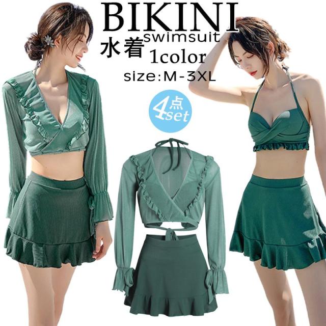 水着 レディース 体型カバー 可愛い フリル 水着 韓国 タンキニ 水着 タンキニ 露出控えめ セパレート 上下セット スカート 可愛い水着 安全パンツ みずぎ 学生 レディース スイムウェア 大人 女性 リゾート 水泳 みずぎ ビーチ 海 温泉 プール 4点セット 長袖