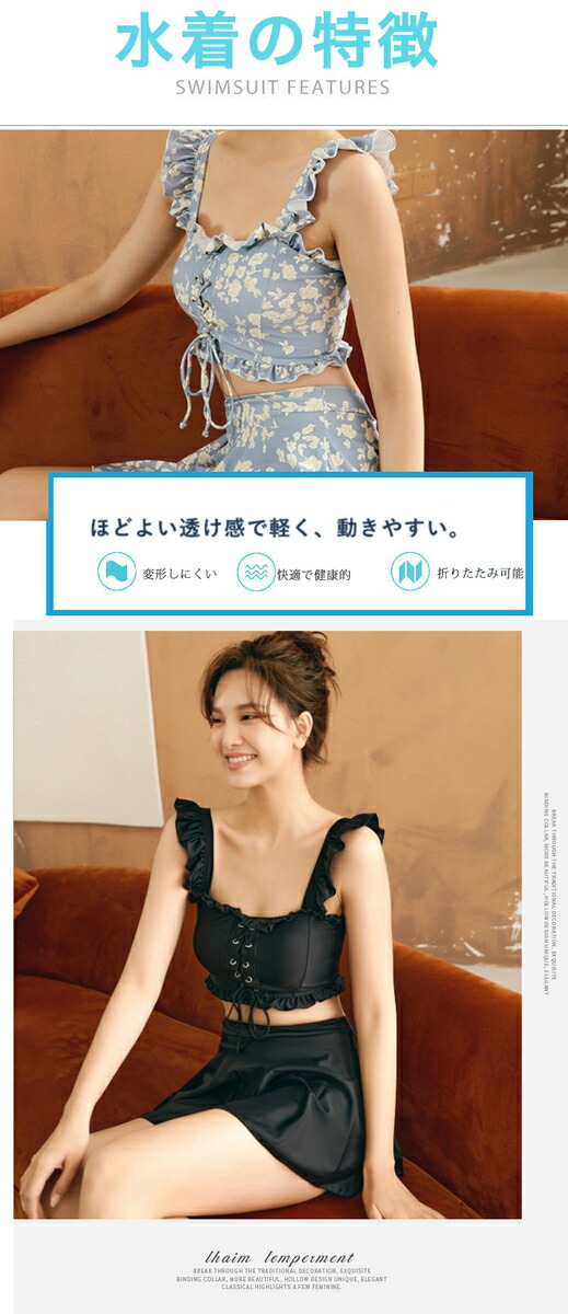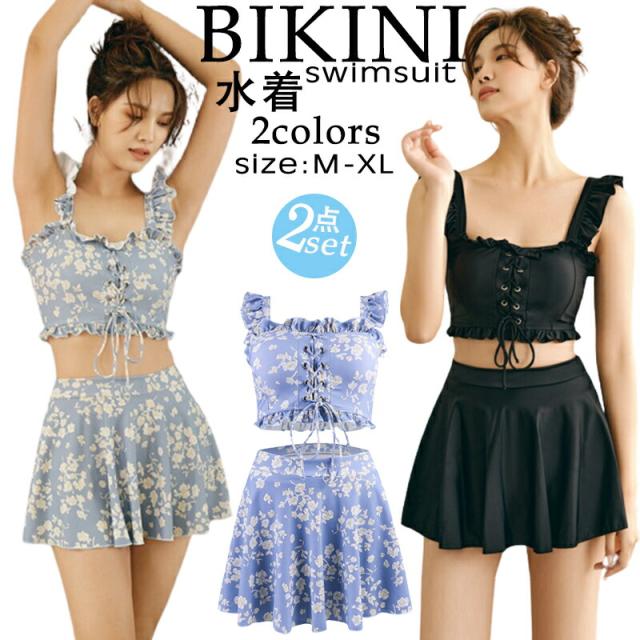 水着 レディース 体型カバー 可愛い フリル 韓国 花柄 タンキニ 水着 タンキニ 露出控えめ セパレート 上下セット スカート 可愛い水着 安全パンツ みずぎ 学生 レディース スイムウェア 大人 水着 女性 リゾート 水泳 みずぎ ビーチ 海 温泉 プール