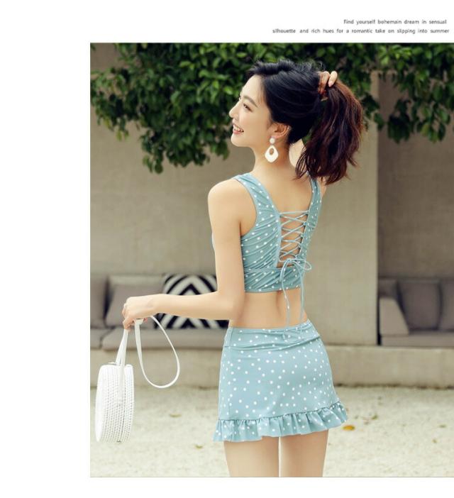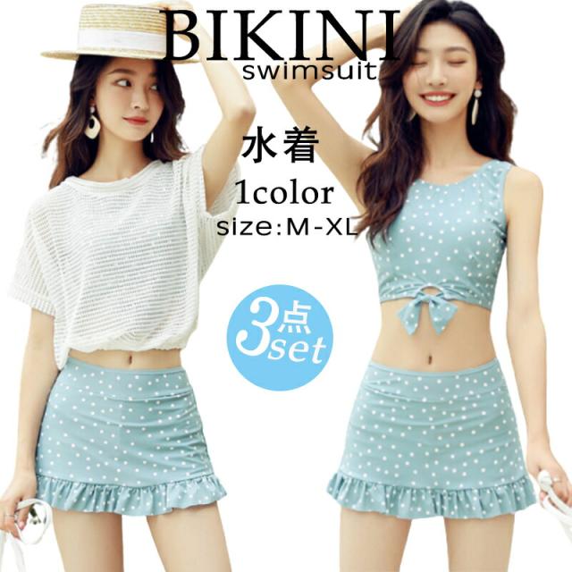 水着 レディース 体型カバー パッド付 ビキニ リボン 透