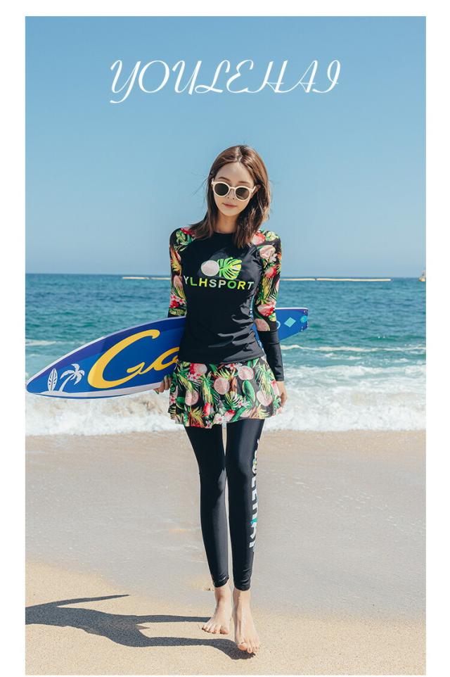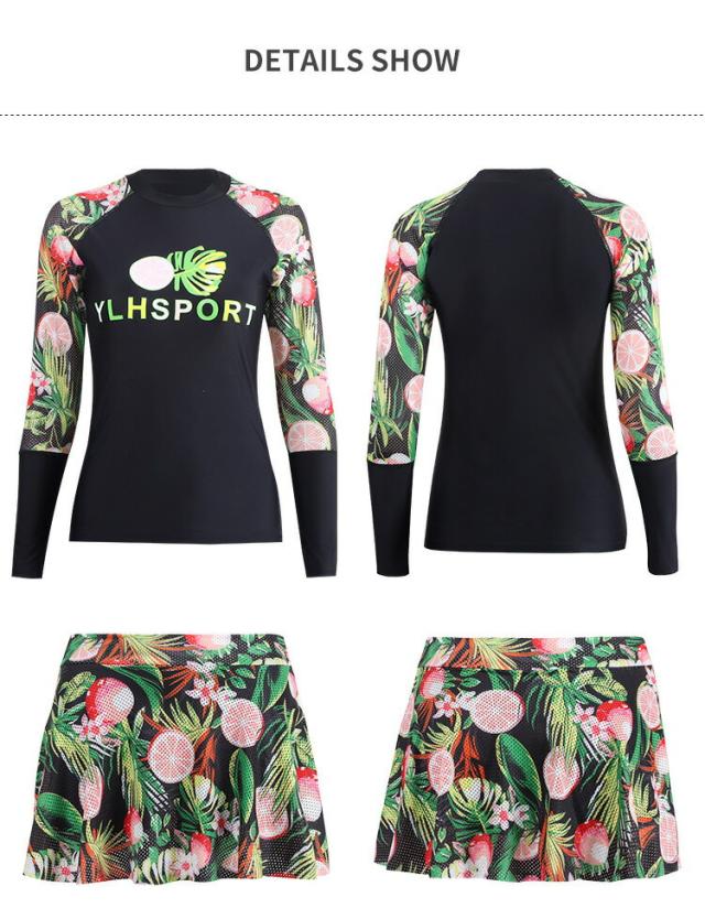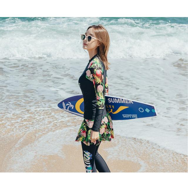 水着 レディース プリント長袖ラッシュガード ショートパンツ上下 3点セット水着 セパレート水着 タンキニ 体型カバー ママ 20代 30代 40代 ボトム ゆるトップス 新作 タンキニ アウター 可愛い ビーチ レディース セット水着