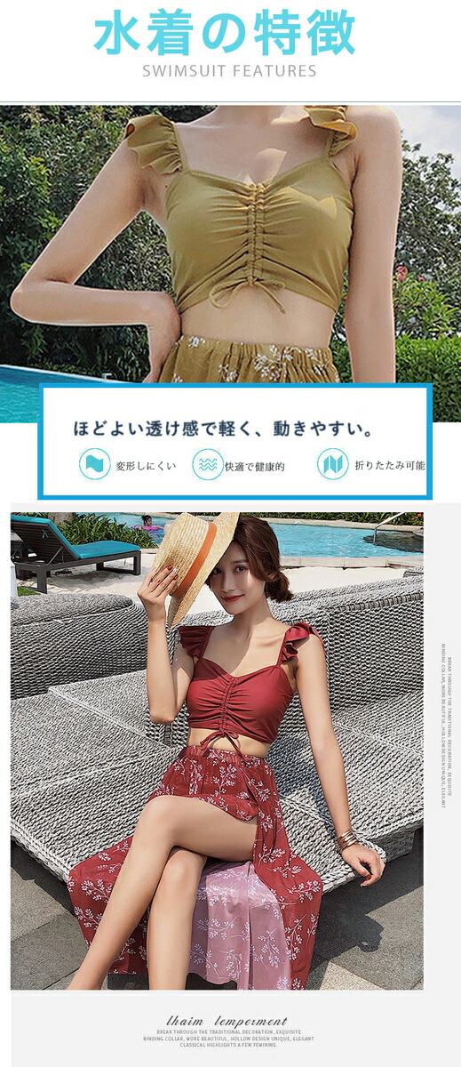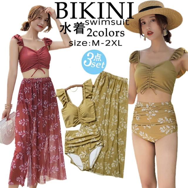 水着 レディース 体型カバー 3点セットビキニ