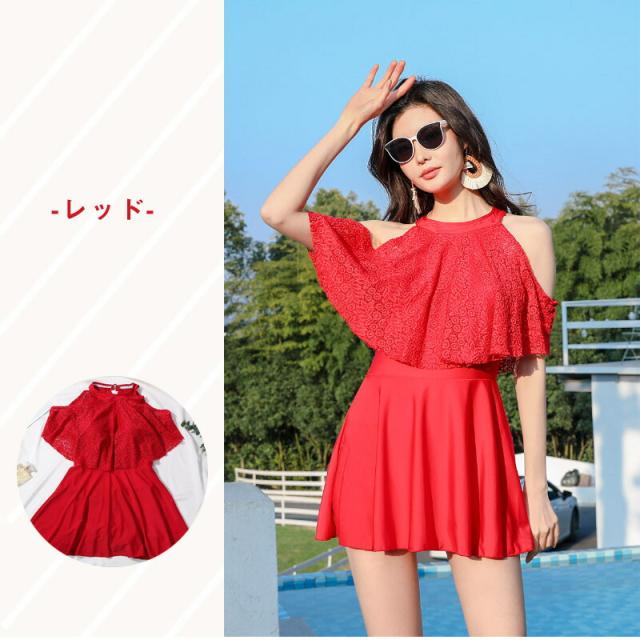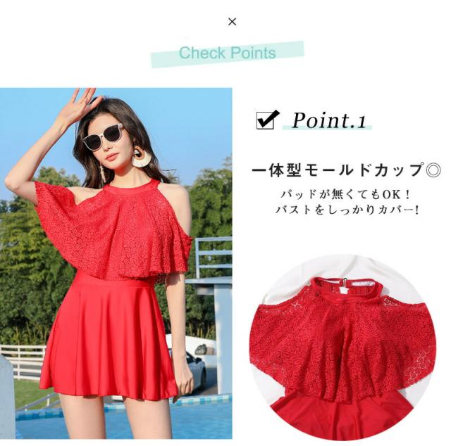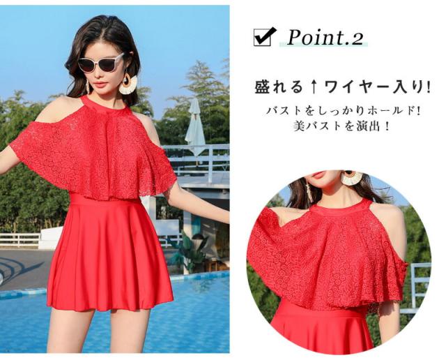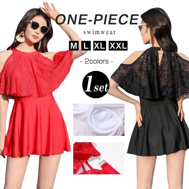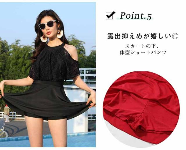 水着 ワンピース レディース 体型カバー水着 大きいサイズ 半袖 ぽっちゃり 20代 30代 40代 50代 ママ水着 ミセス オトナ女子 バックシャン 花柄 レース 無地 二の腕 お腹 お尻 太もも カバーアップ ブラック黒 レッド赤 露出控えめ