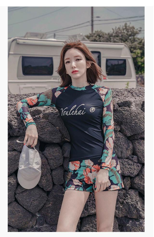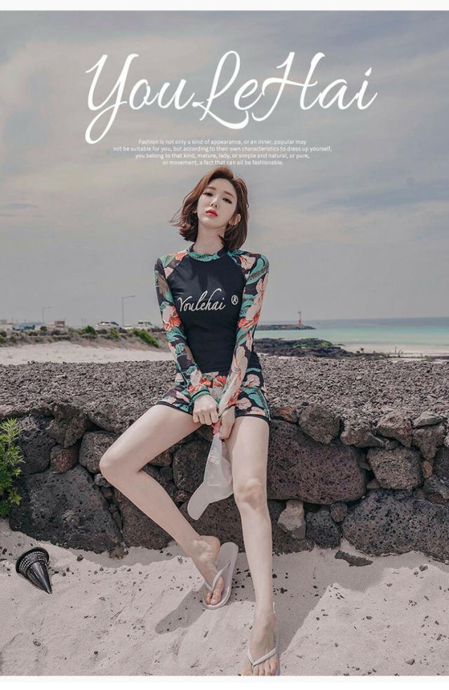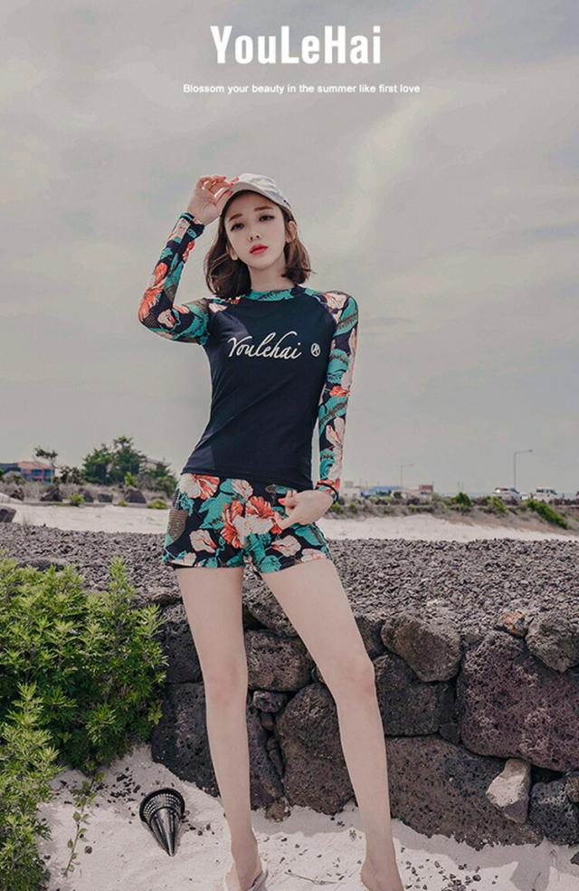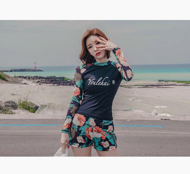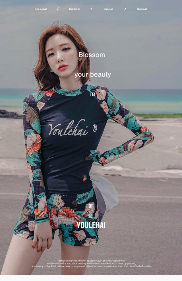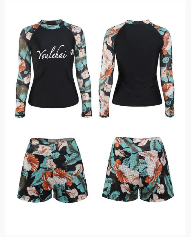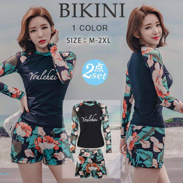 水着 レディース プリント長袖ラッシュガード ショートパンツ上下 2点セット水着 セパレート水着 タンキニ 体型カバー ママ 20代 30代 40代 ボトム ゆるトップス 新作 タンキニ アウター 可愛い ビーチ レディース セット水着