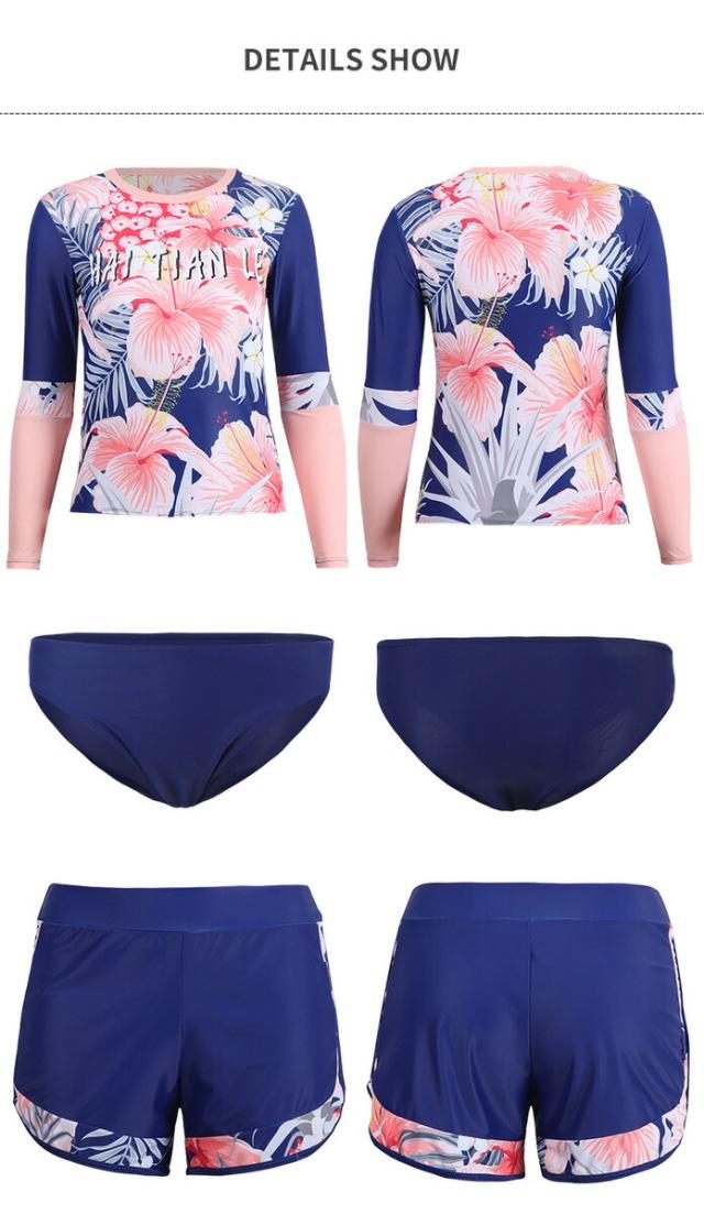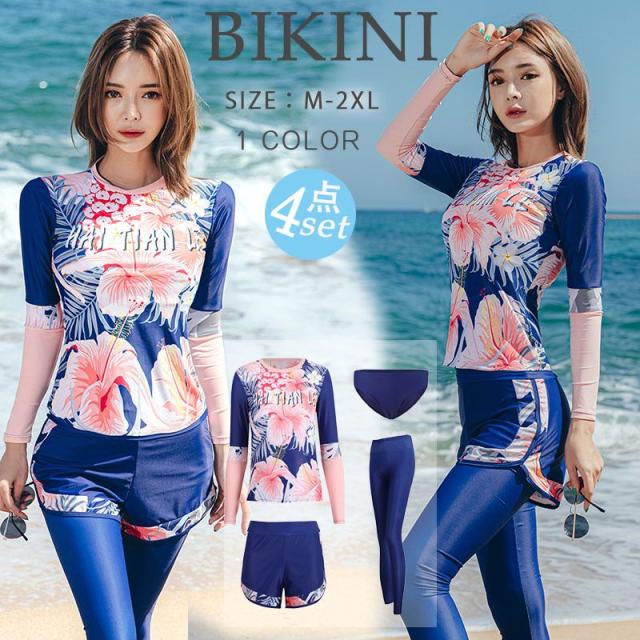 水着 体型カバー水着 レディース 体型カバー フィットネス セパレート 大きいサイズ 4点セット ラッシュガード 短袖 上下セット タンキニ ラッシュレギンス ショートパンツ -41