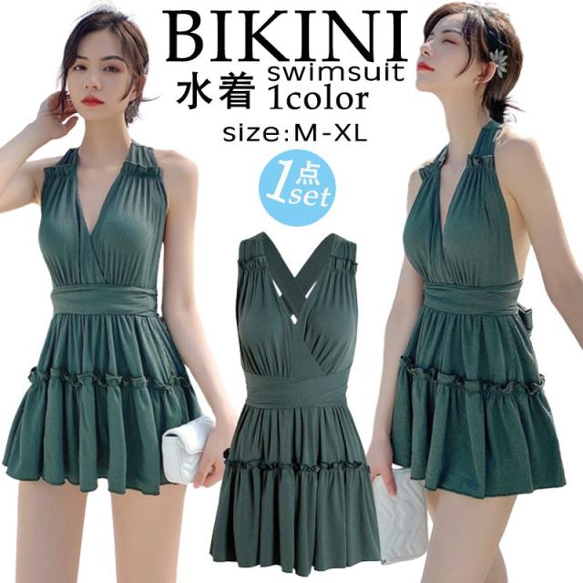 ワンピース水着 ビキニ レディースワンピース セクシー バスト 盛れる ワイヤー入り 背中見せ リゾート 海 プール ビーチ 大人 水ランド 可愛い きれいめ 無地 UV対策 体型カバー 温泉 海外旅行 新婚旅行