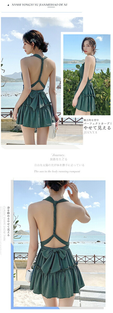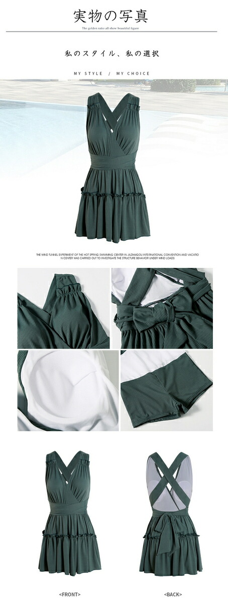 水着 レディース 体型カバー 背中見せ リゾートパッド付