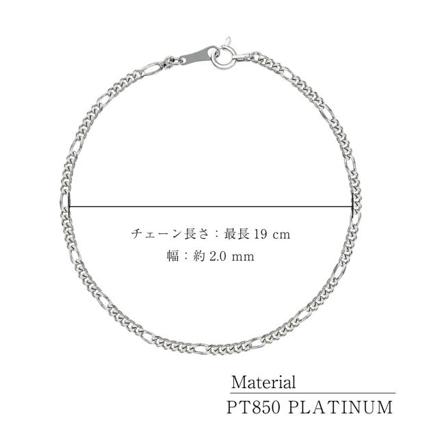 ララクリスティー ブレスレット チェーン レディース メンズ プラチナ PT850 フィガロチェーン 幅2.0mm 19cm lb97-0013-pt-19 LARA Christie プラチナムコレクション