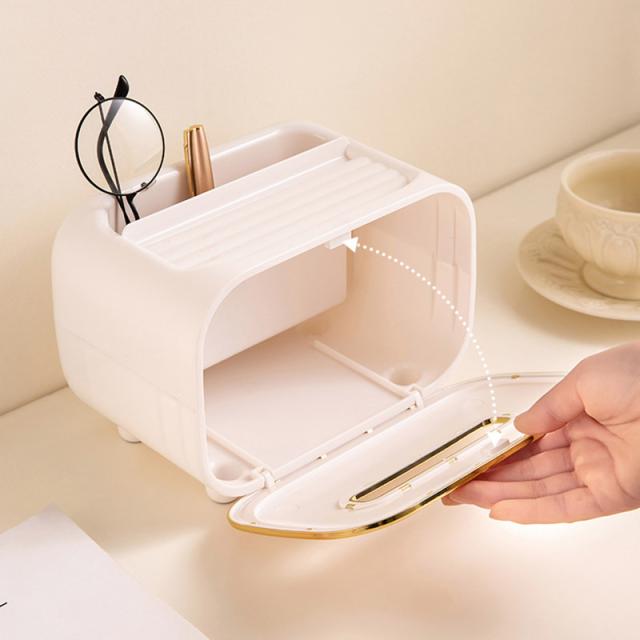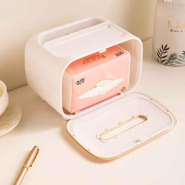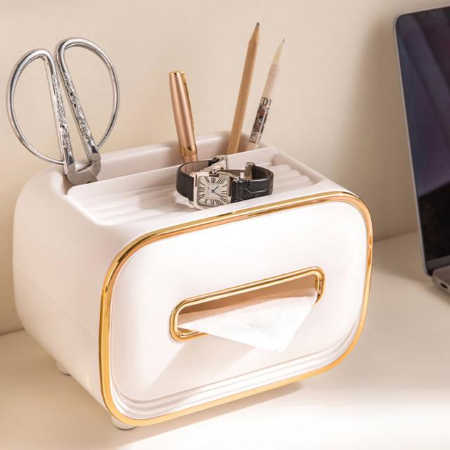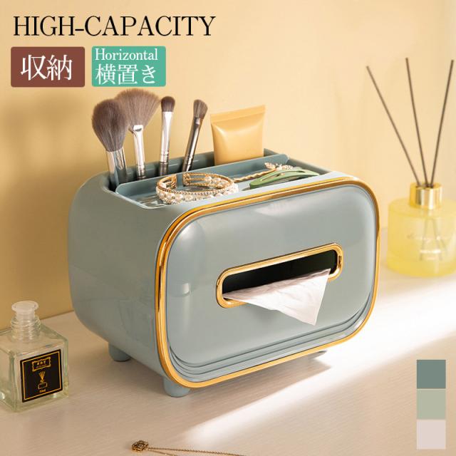 自宅やオフィスなどで、小物をすっきりまとめたいときに重宝します。横向きにティッシュを取り出すのもとってもおしゃれです