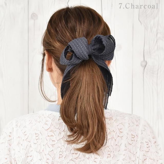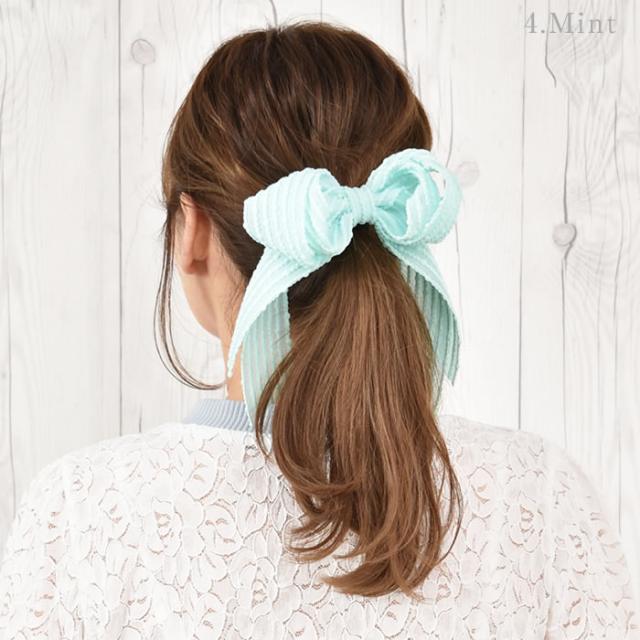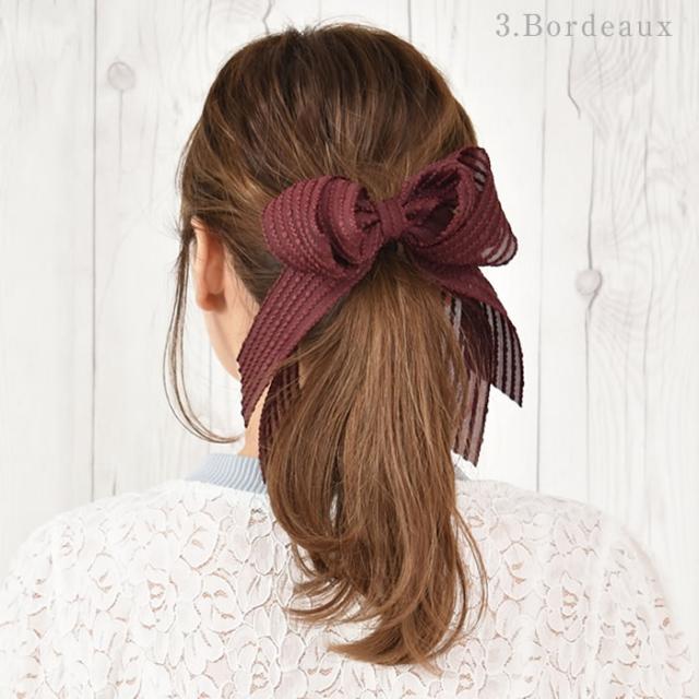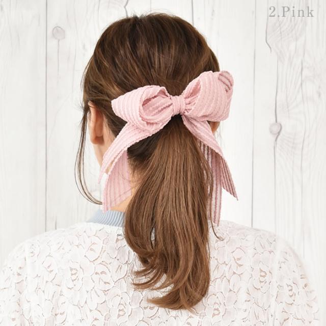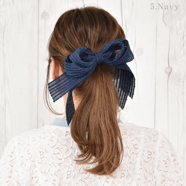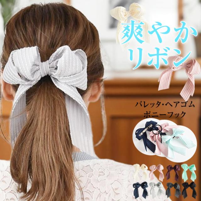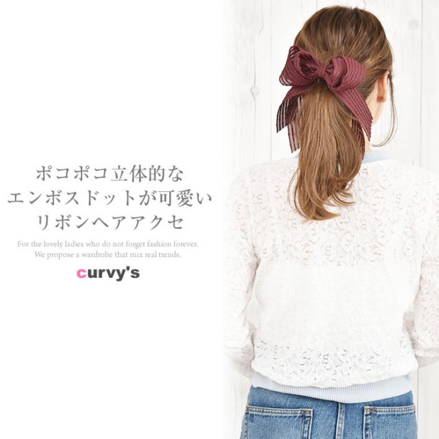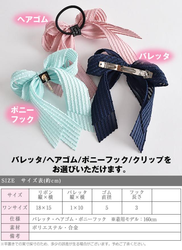 リボン バレッタ ヘアゴム ポニーフック ヘアアクセサリー 髪飾り ヘアリボン ゆうメール便送料無料 エンボス ドット ストライプ ロング レディース 大きい 結婚式 二次会 入学式 入園式 エンボスストライプリボンヘアアクセサリー