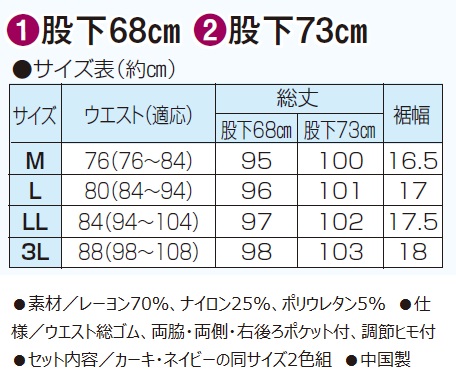 ●仕様/ウエスト総ゴム、両脇・両側・右後ろポケット付、調節ヒモ付