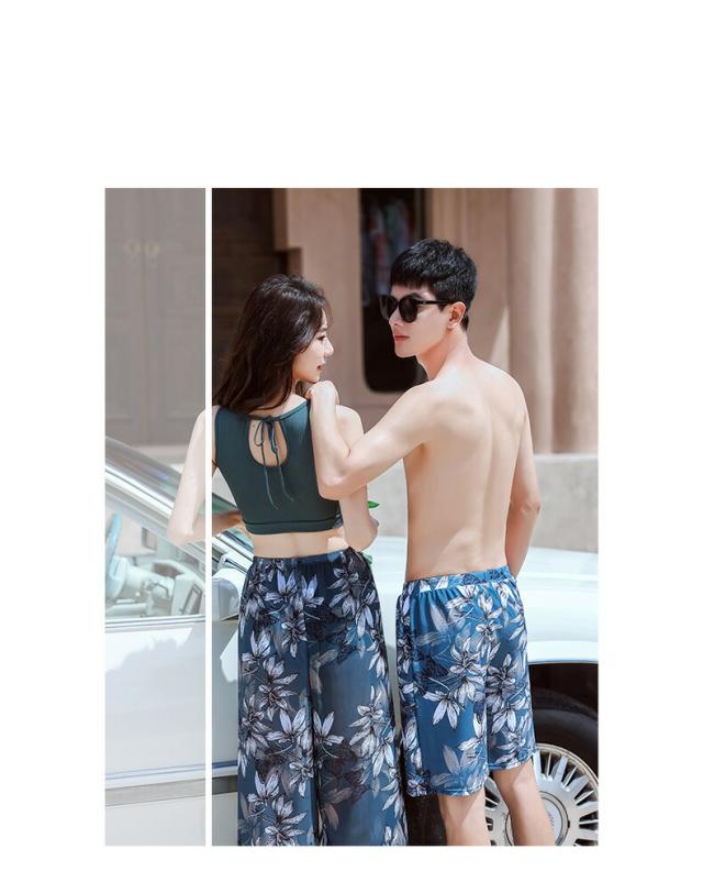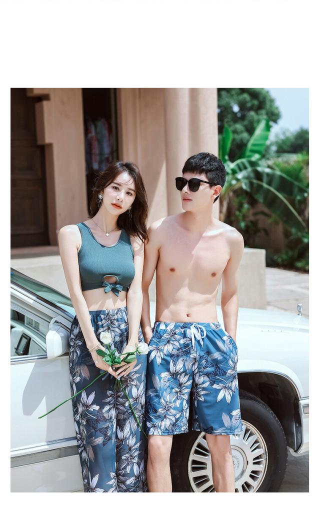 2913-水着 ペアルック カップル水着 レディース メンズ 花柄パッド付き メンズ水着 男性用 ビーチパンツ サーフパンツ みずぎ ミズギ 男女 温泉 ハネムーン 蜜月 海外旅行 新婚旅行
