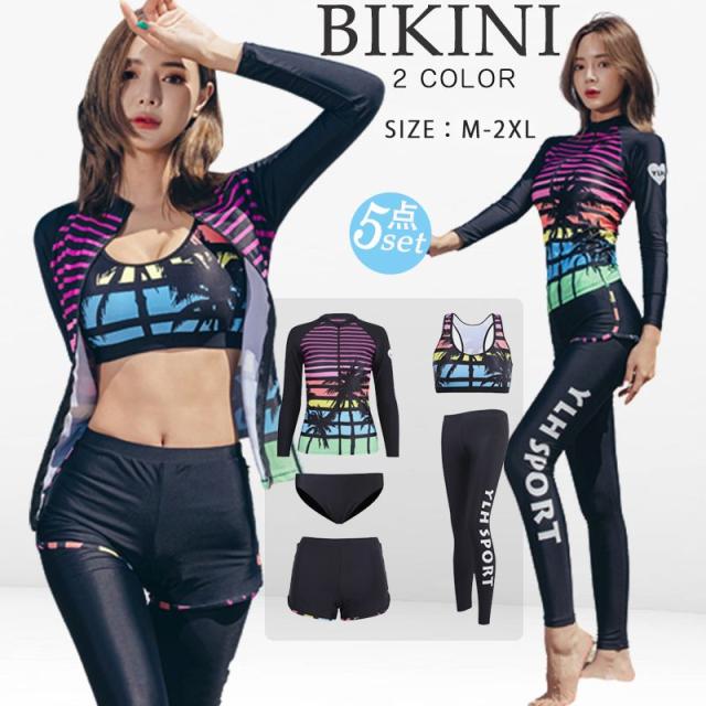 水着 体型カバー フィットネス水着 レディース セパレート オシャレ プール シンプル ボタニカル フードなし かわいい カップ付き 露出控えめ