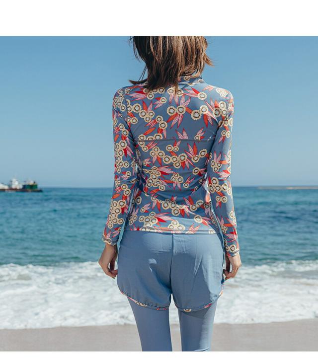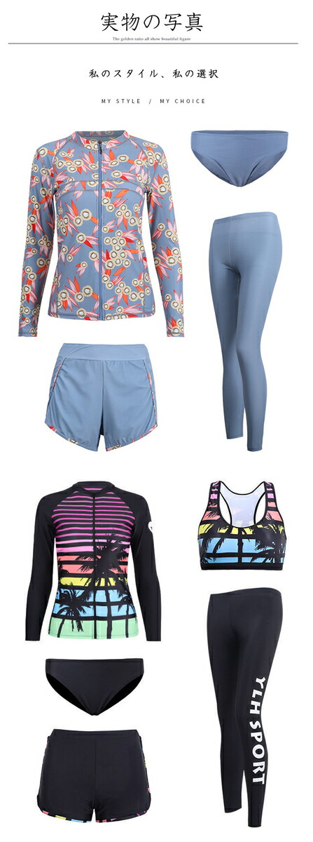 フィットネス水着 体型カバー4点セット 花柄水着 レディース ラッシュガード ショートパンツ シンプル ミセス ビーチウェア 韓国風 水着 タンキニ 水着 タンキニ