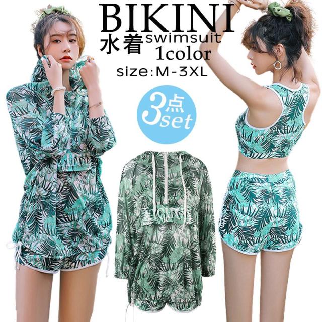 水着 レディース 体型カバー 3点セットビキニ