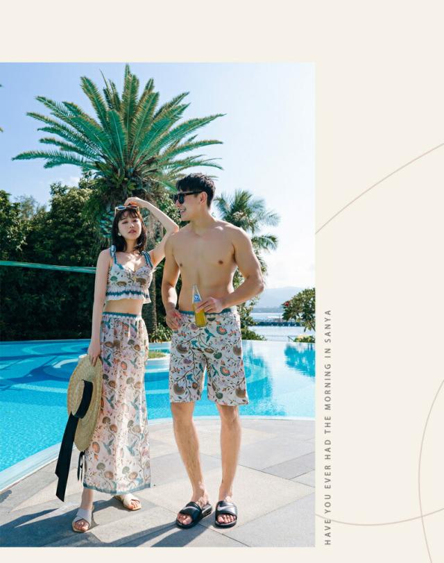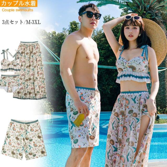 2905-水着ペア ペアルック カップル水着 レディース メンズ 花柄 パッド付き メンズ水着 男性用 ビーチパンツ サーフパンツ みずぎ ミズギ 男女 温泉 ハネムーン 蜜月 海外旅行 新婚旅行