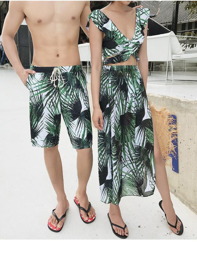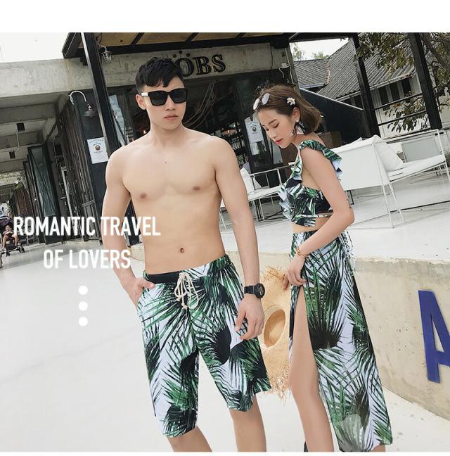 2919-水着 ペアルック カップル水着 レディース メンズ 花柄パッド付き メンズ水着 男性用 ビーチパンツ サーフパンツ みずぎ ミズギ 男女 温泉 ハネムーン 蜜月 海外旅行 新婚旅行