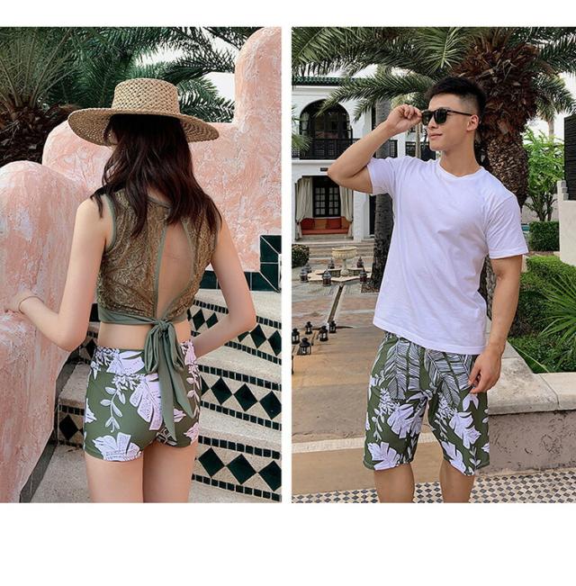 2916-水着 ペアルック カップル水着 レディース メンズ 花柄パッド付き メンズ水着 男性用 ビーチパンツ サーフパンツ みずぎ ミズギ 男女 温泉 ハネムーン 蜜月 海外旅行 新婚旅行