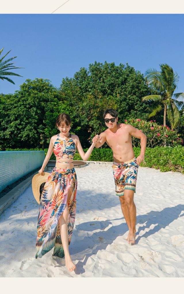 2902-水着ペア ペアルック カップル水着 レディース メンズ 花柄 パッド付き メンズ水着 男性用 ビーチパンツ サーフパンツ みずぎ ミズギ 男女 温泉 ハネムーン 蜜月 海外旅行 新婚旅行
