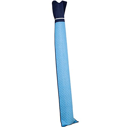 【商品仕様】:サイズ/約39.5×300cm(防ダニ生地 [片面] 約39.5×190cm)、カラー/ブルー、内容/1枚、収納目安/6帖サイズの敷物(ラグサイズ約250×300cm以内)、材質/[本体]ポリプロピレン [中材]ポリエステル・合成繊維(アクリレート系)、付属品/ゴムバンド1個