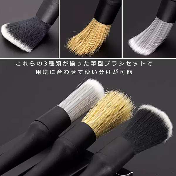 これらの3種類が揃った筆型ブラシセットで、用途に合わせて使い分けが可能です。