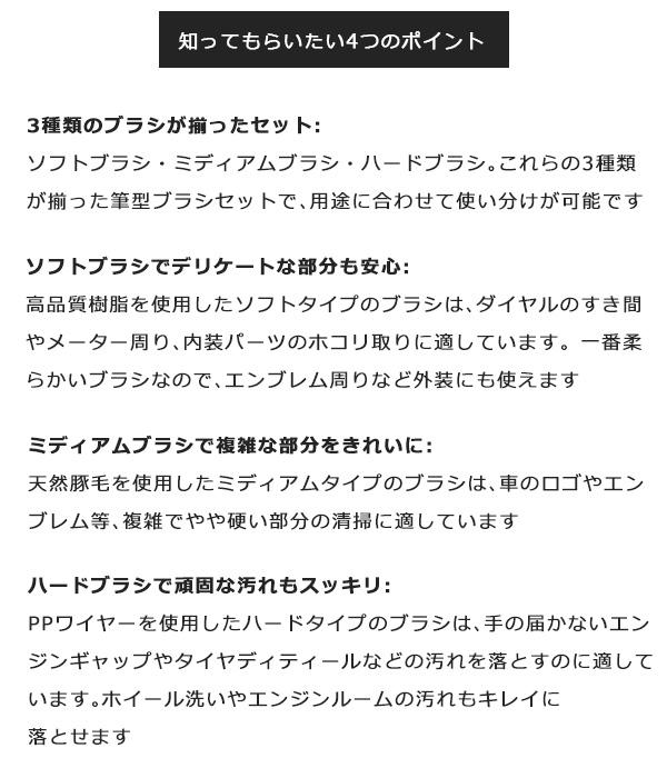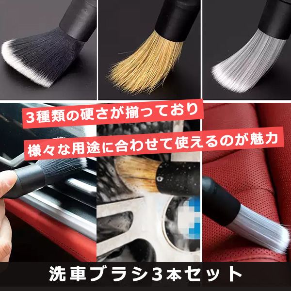 この洗車ブラシ3本セットは、3種類の硬さが揃っており、様々な用途に合わせて使えるのが魅力です。是非、お試しを!