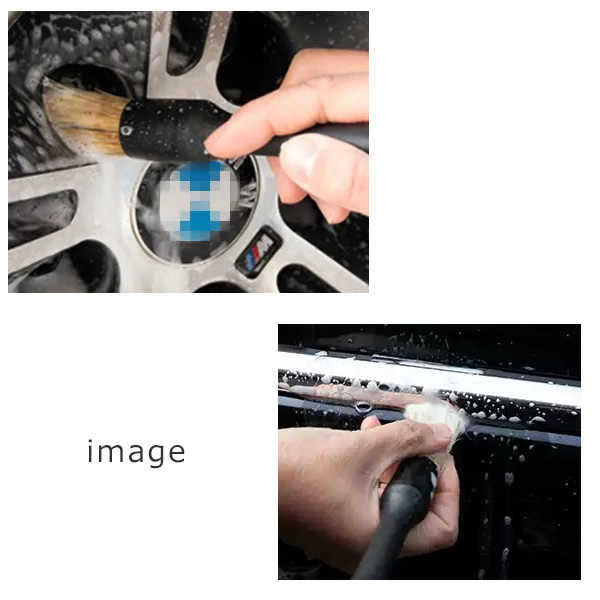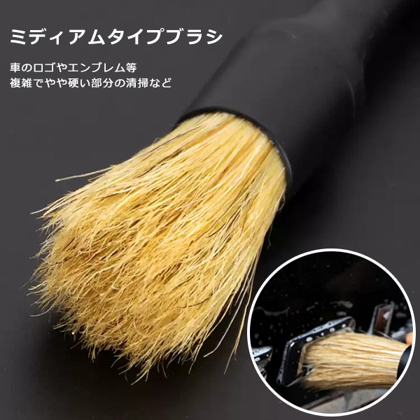 天然豚毛を使用したミディアムタイプのブラシは、車のロゴやエンブレム等、複雑でやや硬い部分の清掃に適しています。