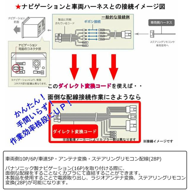 トヨタ車用 10P 6P 車速5P ステアリング28Pカプラー搭載車専用ダイレクト変換コード パナソニックナビ取り付け用 ダイレクト接続 カスタム パーツ NBC-PS501T-28