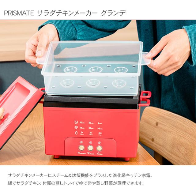 PRISMATE プリズメイト サラダチキンメーカー グランデ (レシピ付) PR-SK044-BK ヘルシー 低糖質 低温調理 炊飯器 蒸し料理 スチーマー キッチン家電 調理家電 便利 簡単 お手軽 コンパクト